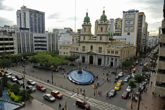 La plaza alberga a la Iglesia de San Francisco y a la primera estatua de Guayaquil, la de Vicente Rocafuerte. El sitio está adornado por una pileta, circundada por árboles y faroles clásicos. En su entorno está rodeada de varios edificios bancarios y comerciales