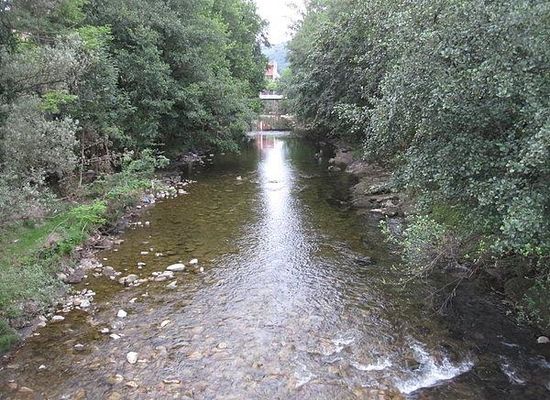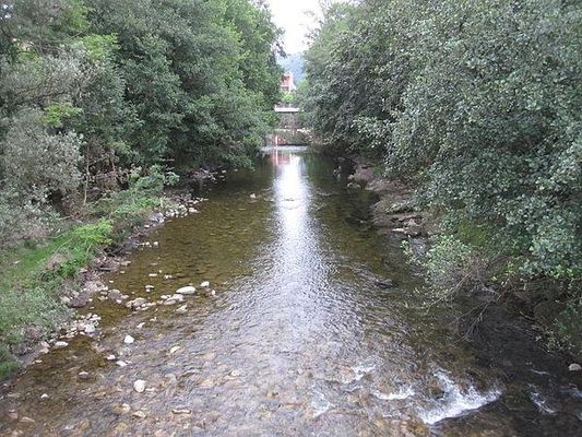 El río Trubia es un afluente del Nalón, uno de los principales ríos asturianos, y por tanto pertenece a su cuenca hidrográfica.Según datos de la Confederación Hidrográfica del Cantábrico, el nombre del río Trubia proviene del latín. De este modo partiría de la construcción trans-upia, donde Upia sería descendiente del latín Aqua; la expresión significaría “detrás del río”, aplicándola desde la perspectiva de la capital de Asturias, Oviedo, ya que se trata de un curso “tras el Nalón”.[2]