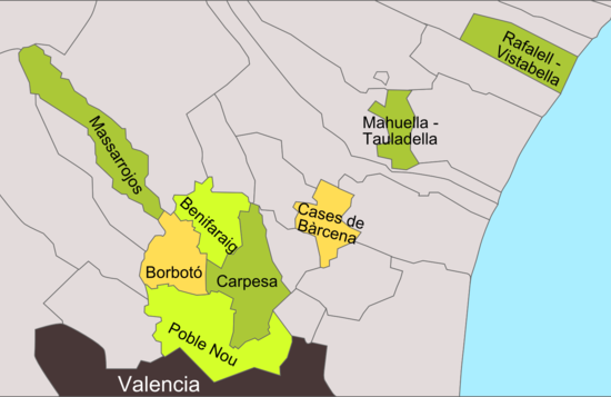 Poblados del Norte es el distrito número 17 de la ciudad de Valencia . Está compuesto por siete poblaciones, anexionadas a Valencia entre 1888 y 1900, que a su vez tienen consideración de barrios: Benifaraig, Pueblo Nuevo, Carpesa, Casas de Bárcena, Mahuella, Tauladella, Rafalell y Vistabella, Masarrochos y Borbotó. Su población censada en 2009 era de 6563 habitantes .[2]​ Es el segundo distrito más extenso de Valencia, aunque uno de los menos poblados, ya que se trata de un territorio disperso y rural, donde la huerta ocupa todavía la mayoría del terreno.[3]​