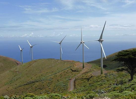 La central hidroeólica de El Hierro, inaugurada el 27 de junio de 2014, fue concebida para asegurar la autonomía energética de la isla y de sus 11 000 habitantes de los que 8 000 viven de forma permanente.[2]