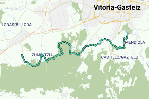 La etapa 08 de la GR-25, que conecta Subijana con Olárizu, es una experiencia desafiante que abarca 17.5 kilómetros de paisajes naturales y culturales en las cercanías de Vitoria-Gasteiz. Esta ruta, con un desnivel acumulado de 596 metros, se adentra en las estribaciones de los Montes de Vitoria, ofreciendo a los senderistas una oportunidad única para explorar la biodiversidad y el patrimonio de la región.A lo largo del recorrido, los caminantes tienen la oportunidad de descubrir Zumelzu, un concejo situado a 9 kilómetros al sudoeste de Vitoria. Este pequeño municipio es conocido por su entorno rural y su proximidad a la naturaleza, lo que lo convierte en un lugar ideal para disfrutar de la tranquilidad del campo vasco. Además, la ruta pasa cerca de Esquíbel, un punto de interés ubicado a 7.5 kilómetros al suroeste de la ciudad, en un pequeño valle rodeado por los Montes de Vitoria. Este valle es un refugio de paz y un excelente lugar para observar la flora y fauna autóctona, así como para apreciar la arquitectura tradicional de la zona.La dificultad de esta etapa es alta, lo que la convierte en un desafío para los senderistas más experimentados. Sin embargo, la recompensa es un recorrido que combina la belleza natural con la rica historia de la región, haciendo de esta ruta una experiencia memorable para aquellos que buscan explorar el entorno de Vitoria-Gasteiz.