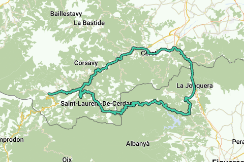 Ruta circular que sale desde Agullana. Pasamos la frontera y vamos al mercado de Céret (sábado 8h-13h). Visitamos la Abadia Santa Maria de Arles sur Tech. Damos un rodeo por Prats de Mollo por su ciudad medieval fortificada por Vauban y seguimos la ruta por Saint Laurent de Cerdans dónde podemos comprar una sandalia catalana. Pasado Coustouges, volvemos a cruzar la frontera. Atravesamos Maçanet de Cabrenys y llegamos a Darnius dónde haremos un alto con vistas al Pantano de Boadella. Volvemos al punto de salida: Agullana.