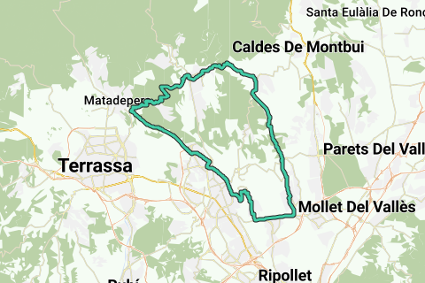 Salir de Sabadell con dirección Castellar por la Avd. Matadepera. Después en Castellar dirección Sentmenat. Desde aquí a Polinya y de vuelta a Sabadell.