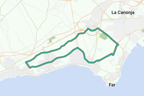 Salir de Cambrils, dirección Vilafortuny, seguimos por Clos Barenys hasta Vilaseca, cogemos el vial que lleva a La Pineda y en el tren giramos a la derecha hacia Salou, en plaza Europa nos dirigimos hasta el vial y para Cambrils.