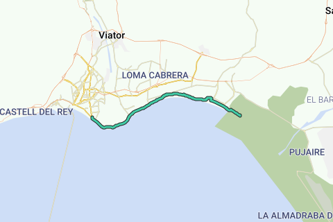 Salida desde el auditorio maestro padilla con llegada a la ermita de torregarcía en Retamar, todo el camino transcurre por carril bici y caminos de tierra paralelos a la playa