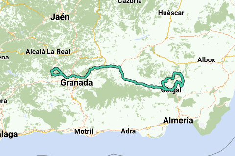 <p><a class="routeYou_embed" href="https://app.routeyou.com/es-es/route/view/6764112?utm_source=embed&utm_medium=article&utm_campaign=routeshare&navigation=external" title="Ruta 2 de Almeria 397 Km - RouteYou" target="_blank"><img src="https://image.routeyou.com/embed/route/960x670/6764112-es@2x.png" style="width: 100%; height: auto;" alt="Ruta 2 de Almeria 397 Km"></a></p>