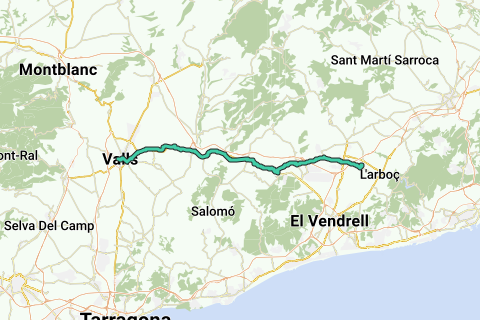 <p><a class="routeYou_embed" href="https://app.routeyou.com/es-es/route/view/9000418?utm_source=embed&utm_medium=article&utm_campaign=routeshare&navigation=external" title="Banyeres del Penedès - Valls - RouteYou" target="_blank"><img src="https://image.routeyou.com/embed/route/960x670/9000418-es@2x.png" style="width: 100%; height: auto;" alt="Banyeres del Penedès - Valls"></a></p>