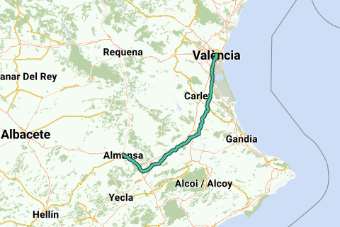 <p><a class="routeYou_embed" href="https://app.routeyou.com/es-es/route/view/9989954?utm_source=embed&utm_medium=article&utm_campaign=routeshare&navigation=external" title="Valencia - Almansa - RouteYou" target="_blank"><img src="https://image.routeyou.com/embed/route/960x670/9989954-es@2x.png" style="width: 100%; height: auto;" alt="Valencia - Almansa"></a></p>