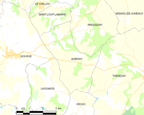 Aubigny es una población y comuna francesa, en la región de Poitou-Charentes, departamento de Deux-Sèvres, en el distrito de Parthenay y cantón de Thénezay.