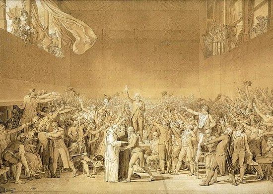 Con el pretexto de unas reparaciones que debían hacerse en la sala del "Hôtel des Menus Plaisirs", en la que se celebraban las sesiones de los Estados Generales de Francia, la guardia impidió que los diputados del tercer estado se reunieran allí el 20 de junio de 1789. Los diputados entonces se reunieron en la sala del jeu de paume de Versalles. Con la ayuda del diputado Jean-Joseph Mounier, el abate Emmanuel-Joseph Sieyès se compromete a redactar la fórmula del célebre juramento del Jeu de Paume: