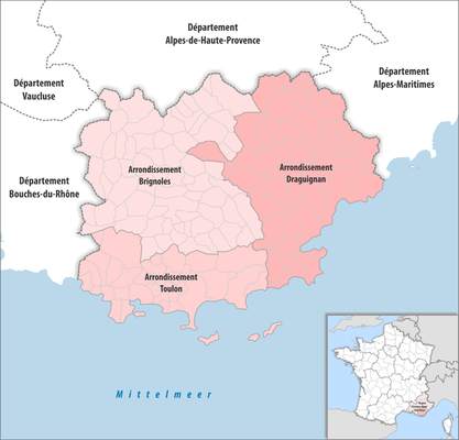En un principio, su capital fue Toulon, pero en 1793, como castigo a la ciudad por haber traicionado a la revolución , la capital pasó a ser Grasse. En los años siguientes, hubo otros cambios de capital: En 1795, Brignoles y en 1797, Draguignan, esta última capital de Var hasta 1974, cuando Toulon volvió a ser capital.