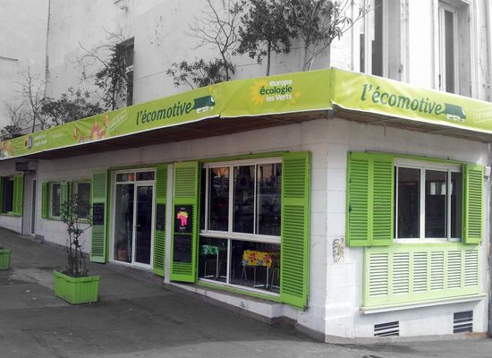 L'Ecomotive ofrece cocina ecológica y casera para la mañana, el almuerzo y la merienda: sopa de habas y guisantes partidos, tarta de acelgas y roquefort, tarta de queso, tarta de manzana, tarta de zanahoria...