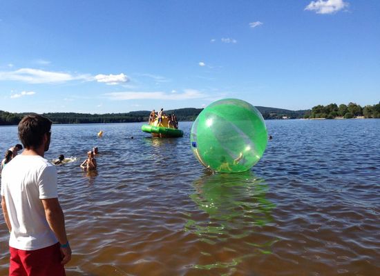 Aplouf es el especialista para sus risas en familia a orillas del lago de Vassivière Ubicados en la playa de Vauveix, podrás encontrarnos todos los días para remar en familia, poner a prueba tu equilibrio o chapotear y divertirte en los juegos de agua