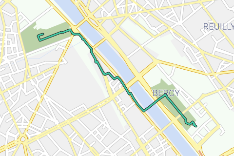 Este paseo comienza en Cour Saint Emilion, a lo largo del viñedo de Bercy hasta el viñedo de Le Jardin des Plantes.