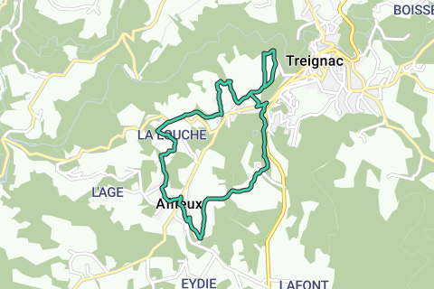 Alternando los paisajes de llanura y de sotobosque, este circuito serpentea por las alturas, ofreciendo espectaculares vistas sobre el campo. Al atravesar pequeños y encantadores pueblos, conduce al estanque de Linatre, junto al cual siempre esperan algunos pescadores. El viejo pueblo de Affieux forma parte de un sitio inscrito que incluye el castillo (privado) del siglo XVII y la iglesia de Saint-Pardoux. La estación, hoy restaurada, albergaba el antiguo POC (París-Orléans-Corrèze). Atención: el acceso al sitio del Rocher des Folles está prohibido para los ciclistas de montaña y jinetes (peligroso).