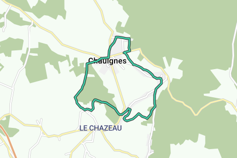 5- Continúe por la misma pista hasta la carretera asfaltada y gire a la izquierda. Entre en la aldea de Chalons. En el cruce, gire a la derecha y en el siguiente cruce. En el cruce, gire a la derecha. En el cruce, gire a la derecha y siga por el bosque hasta el pueblo de Chaulgnes.