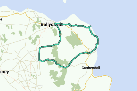 Este tour de la costa y valles de Antrim combina escalar muy duro con paisajes espectaculares. Desde el pueblo costero de Ballycastle, dirígete hacia el este sobre Torr Head, enfrentando una serie de subidas brutalmente empinadas. Después de descender a Cushendun, se vuelve tierra adentro para escalar Glendun y luego descender Glenshesk, dos de los famosos valles de Antrim (visitcausewaycoastandglens.com).