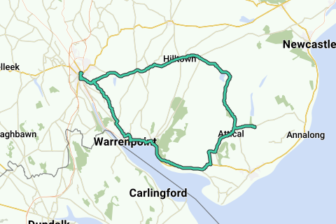 Las impresionantes, pero accesibles y acogedoras Mourne ofrecen una amplia gama de opciones de ciclismo. Esta ruta incluye el paisaje celebrado de las Montañas Mourne, con un viaje de ida y vuelta opcional y muy recomendado de 17 km al Valle Silencioso, dirigiéndose hacia el este desde Newry sobre colinas ondulantes antes de comenzar la larga subida más allá de la Represa de Spelga. Después de un largo descenso desde Spelga, la ruta corre junto a Carlingford Lough hasta Rostrevor.