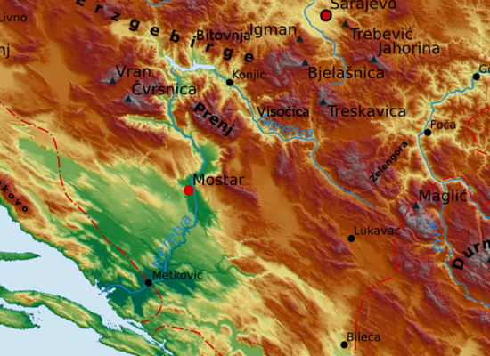 El río Neretva o Narenta , es un río costero de la vertiente del mar Adriático que discurre por Bosnia Herzegovina y Dalmacia, en la moderna Croacia. Su longitud total es de 225 km, de los cuales 203 km están en territorio de Herzegovina, y los últimos 22 km en la región de Dubrovnik-Neretva en Croacia.