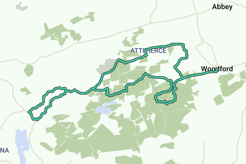 Descubre todas las ventajasDescubre la pintoresca Ruta en Bicicleta de Grava en Connaught cerca de Woodford. Explora el encantador pueblo de Woodford en el camino. ¡Disfruta del paseo!