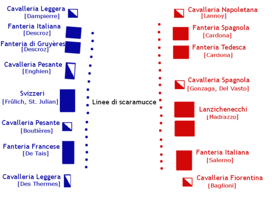 La batalla de Cerisoles fue un enfrentamiento armado entre el ejército francés de Francisco I y el del emperador del Sacro Imperio Romano Germánico Carlos V en el marco de la Guerra Italiana de 1542-1546.[1] La batalla, calificada por el historiador Bert Hall como "maravillosamente confusa", se libró el 11 de abril de 1544 en las cercanías de la villa de Ceresole d’Alba, en la región italiana del Piamonte. Las tropas francesas bajo el mando de Francisco de Borbón, conde de Enghien, derrotaron a las tropas imperiales a las órdenes de Alfonso de Ávalos, marqués del Vasto y de Pescara.[2] A pesar de que las tropas imperiales sufrieron numerosas bajas, los franceses no fueron capaces de aprovechar su victoria para tomar la ciudad de Milán.