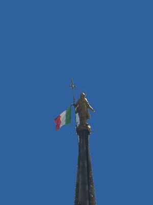 La Madonnina es una estatua de cobre dorado de Carlo Pellicani que representa a la Asunción y está situada en el chapitel mayor de la Catedral de Milán. Desde el momento de su colocación, realizada en 1774 , se convirtió en el símbolo de la ciudad, al margen de su significado religioso. Frases como a la sombra de la Madonnina designan por antonomasia a la ciudad de Milán.