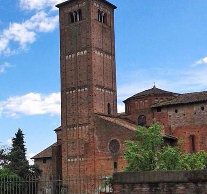 Una iglesia paleocristiana en el lugar, dedicada al Santo Sepulcro, se encontraba cerca de aquí, y la primera documentación de un monasterio en este lugar data de 1090. El monasterio se asoció con la Orden Vallumbrosana y albergó al obispo Lanfranco Beccaria hasta su muerte en 1198. El Papa Alejandro III elevó a Lanfranco a la santidad al año siguiente. Esta iglesia, que albergaba sus reliquias, fue reconstruida a partir de esta época, lo que llevó a su consagración en 1236, con el campanario datando de 1237 y la fachada de 1257. El pequeño claustro fue diseñado en 1476 por el arquitecto Giovanni Antonio Amadeo. Amadeo también diseñó y esculpió los elementos del Arca de San Lanfranco, que sirve como monumento funerario y tumba del santo.