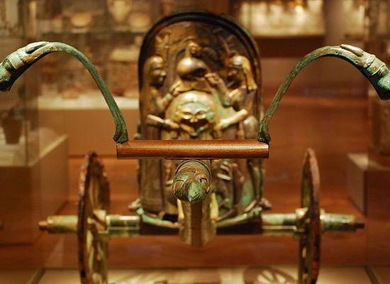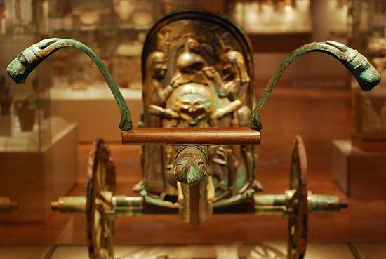 Se trata de un carro etrusco, aunque es posible que el artista que ejecutó los relieves fuera griego. Los etruscos estaban asentados en una amplia zona del centro de Italia, en las regiones de Toscana, Lacio y Umbría que recibió por ello el nombre de Etruria, donde crearon una poderosa confederación o anfictionía. El territorio etrusco floreció hacia el 750 a. C. y su máxima expansión tuvo lugar c. 500 a. C. Ejerció una poderosa influencia en la civilización romana. Empezó a decaer tras la conquista de Veyes por los romanos en el año 396 a. C. y su incorporación definitiva a Roma tuvo lugar en el siglo I a. C.