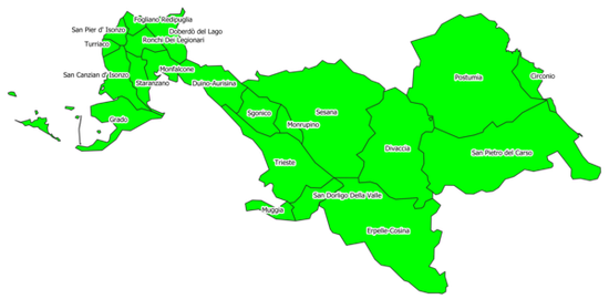 El territorio corresponde al hinterland de la villa de Trieste, que había formado parte del Imperio austrohúngaro y después de la Primera Guerra Mundial, fue puesta bajo administración italiana. Fue capital del Estado libre de Trieste, creado por el tratado de paz de París de 1947, y que comprendía la ciudad y una pequeña zona desde Duino hasta Cittanova , y fue dividido en dos zonas: la zona A, en el norte, administrada por el Reino Unido, Francia y los Estados Unidos de América, en la cual estaba incluida la ciudad de Trieste, y la zona B, en el sur, administrada por Yugoslavia. El tratado de Londres de 1954 pasó la administración de Trieste a Italia y Yugoslavia, en espera de la nómina de un gobernador: la zona A pasó a formar parte de Italia, y la zona B, de Yugoslavia. En 1975 Italia y Yugoslavia firmaron cerca de Osimo un tratado que terminó la cuestión fronteriza de Trieste y un acuerdo de cooperación económica, para el cual se creó una zona industrial libre de unos 20 km², en los dos lados del límite del área de Sesana-Fernetti -a la cual pertenece Trieste. La zona, aprobada por la Unión Europea, quedó administrada por un comité mixto de seis miembros.