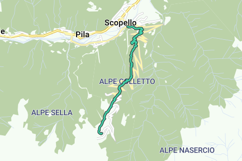 El sendero en cuestión representa el antiguo camino de acceso principal a Alpe di Mera, ahora intersecado por la carretera transitable. Todavía se utiliza cada año, al final del invierno, para la procesión que renueva la antigua promesa que data de 1585. En los archivos no se encuentran muchos documentos, pero la fecha se puede observar hoy en día en un fresco en el Oratorio de la Madonna della Neve en Alpe di Mera. En ese año (1585), los habitantes de Scopello y Pila hicieron una promesa a la Madonna de subir a pie, desde la Iglesia Parroquial de Scopello hasta el Oratorio dedicado a la Madonna della Neve, en Alpe en procesión, ya que la Santa Virgen María había defendido a los rebaños y a los habitantes de la invasión de los lobos. Desde entonces, cada año, al menos un miembro de cada núcleo familiar llega al Oratorio. Hoy en día, esta celebración es muy sentida: representa un motivo de agradecimiento por la temporada invernal que concluye y es de buen augurio para la temporada estival que se avecina; son muchos los participantes. A lo largo del recorrido, hay algunos pilones votivos, dos bastante antiguos, uno que data de la primera mitad del siglo XX, lugares de descanso que atestiguan la fe y el arte de quienes transitaban habitualmente por esa vía. La imagen de la Madonna di Mera conservada en el antiguo oratorio es una copia del siglo XVIII de la Madonna di Oropa, integrando así el Santuario dentro del circuito de peregrinaciones de las "Madonnas Negras" presentes en el territorio alpino.