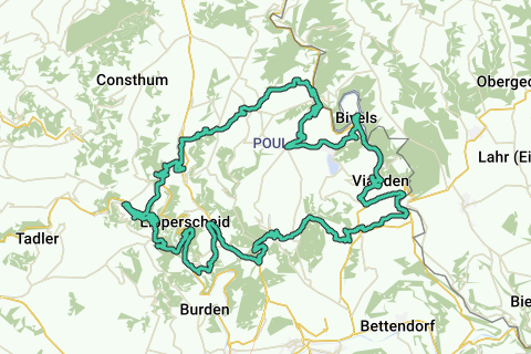 Esta ruta en las Ardenas luxemburguesas orientales no es tan larga (64 kilómetros), pero tiene una cantidad relativamente alta de metros de altitud (1640) y, por lo tanto, es bastante difícil. La ruta incluye tres de los 6 ascensos más difíciles en las Ardenas. Estos son superados solo por dos variantes del ascenso al Haussire en La Roche-en-Ardenne. El hecho de que tantos ascensos en Luxemburgo sean considerados los más duros de las Ardenas se debe principalmente a las relativamente grandes diferencias de altitud entre el valle (especialmente el Our y el Sauer) y la meseta. El recorrido lo lleva a través de un paisaje que, gracias al relieve, los ríos y una agradable variedad de bosques, praderas y campos, es impresionante. Las carreteras son en su mayoría tranquilas y la superficie de la carretera está en excelente estado.