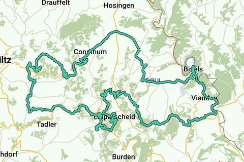 La ruta comienza en Vianden y pasa por el embalse en el Our (el Unterbecken) hacia Bivels (primero unos kilómetros relativamente planos).