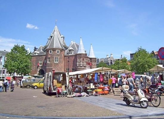 El Nieuwmarkt (Mercado Nuevo) es en realidad una plaza del barrio chino de Ámsterdam, y está situada junto al Barrio Rojo. Esta plaza se creó al construirse los canales de esta zona en 1614, y se empezó a utilizar como mercado - de ahí su nombre. Todavía hoy se instala un mercado de productos biológicos todos los sábados. También hay multitud de animados cafés e interesantes tiendas de libros y antigüedades. El barrio de Nieuwmarkt es ideal para pasar unas horas curioseando escaparates y viendo pasar a la gente.