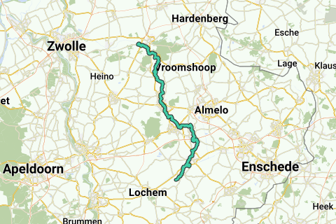 El Regge es uno de los más grandes ríos pequeños de los Países Bajos. Un arroyo de apenas un metro de ancho comienza en Diepenheim y termina más de setenta kilómetros al norte como un río amplio en el Vecht cerca de Ommen. Esta caminata parte de la fuente y trata de seguir el curso lo más cerca posible hasta la desembocadura en Ommen.