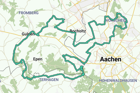 Drielandenrondrit 13 desde Heijenrath. Inicio/meta: de Zegelskoel, Heijenratherweg 22, Heijenrath. Ascensiones: Plettenberg oeste Wittem 1.100 m., máx. 6.0%. Trintelenberg Eys 2.100 m., máx. 7.0%. Goedenraadsbergweg Eys 700 m., máx. 9.0%. Oststraße/Zum Wurmtal Pley (D) 700 m., máx. 8.%. Rolandstraße Forstheide (D) 1.400 m., máx. 8.0%. Rathausstraße Laurensberg (D) 1.000 m., máx. 10.0%. Harles Vijlen 700 m., máx. 9.0%. Pas van Wolfhaag (parcialmente) Vaals 1.300 m., máx. 9.0%. Vaalserberg (parcialmente) Vaals 2.000 m., máx. 8.0%. Rue des Ecoles Gemmenich (B) 500 m., máx. 6.0%. Rue Terstraeten Gemmenich (B) 750 m., máx. 7.0%. Rue de Beusdael Sippenaeken (B) 2.800 m., máx. 8.0%. Metros de altitud: 1.134. Parada de café: Teuterhof Hütt'n, Teuterhof 1a, Würselen (D) (abierto todos los días)