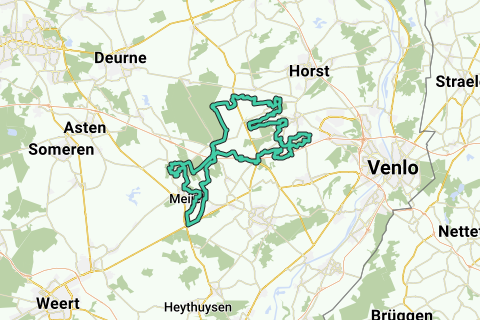 Luego hay una sección con 3 semáforos para cruzar las entradas y salidas de la A67, donde también pasarás junto al popular restaurante Turfhoeve. Al sur de la A67, sigue un camino de grava y cruzas la A67 (puente) para, al otro lado, ciclar hacia Helenaveen. A continuación, se presentan caminos de grava en tu camino al oeste del pueblo de Grashoek y junto al Canal de Deurne y el Noordervaart. A través de caminos de grava justo fuera de Meijel, ciclarás hacia Neerkant donde aún seguirán algunos caminos de grava alrededor y en el pueblo.