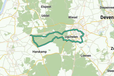 Comenzar en el aparcamiento de Veluwe Houtbeek para este hermoso recorrido en bicicleta a través de la estación de Apeldoorn hasta el centro comercial De Eglantier, donde hay una tienda de ropa para personas grandes.