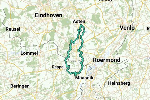 Pedaleas desde Asten-Heusden a lo largo de la Groote Peel hacia Ospel, Nederweert-Eind, Schoor y Weert. Luego pedalearás hacia Swartbroek y atravesarás el parque fronterizo por caminos a menudo tranquilos (en el valle de Itterbeek, junto al Zuid-Willemsvaart y a través de la reserva forestal Jagersborg cerrada al tráfico de automóviles), por un hermoso paisaje cultural alrededor de Molenbeersel y a través y junto a varias áreas naturales: