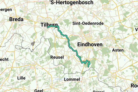 A partir de la Ringbaan-Zuid estamos conduciendo a través de Tilburg, en dirección al conocido Cenakel, para luego dejar atrás el bullicio. A través de la Ruta Roja de La Trappe llegamos a la Eindhovenseweg. Pasamos por debajo de la A58 y continuamos a través de Vinkenberg, Boekzijde, Den Opslag, y varios pequeños pueblos. A lo largo de Vessem, Broekhoven y Westerhoven nos abrimos paso, hasta que finalmente llegamos de nuevo a la Dommelvallei.