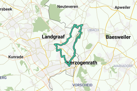 Una ruta variada en la zona fronteriza de Limburgo del Este-Sur. El hermoso valle del arroyo, donde serpentea el río fronterizo Wurm, y el precioso Beenbos. El río Wurm también es el hábitat del castor y a menudo se encontrará con sus huellas roedoras. La abadía de Rolduc, la antigua granja Nieuw Ehrenstein y muchos otros puntos de referencia notables. El destino es el valle de María, una antigua cantera de grava justo detrás de la frontera en Rimburg, que hoy es un área de conservación. Las salvajes lupinas crecen aquí exuberantes y la zona se caracteriza por su tranquilidad y desconocimiento.