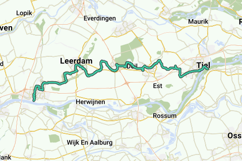 Esta ruta es completamente plana excepto por una pequeña pendiente más allá de Gorkum. La ruta también es completamente pavimentada excepto por dos tramos de aproximadamente tres cuartos de kilómetro en Heukelum (grava fina accesible, también apta para una bicicleta de carreras). También más allá de Enspijk hay un tramo sin asfaltar de 0,5 km.