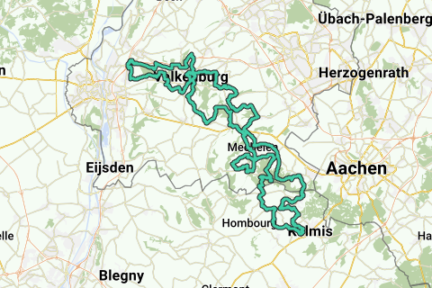 La ruta entra ahora en Bélgica y ya te has alejado del valle de Geul. Pero el hermoso sendero asfaltado sobre una antigua línea de tren (RAVeL 39) te lleva de Gemmenich a Plombières y nuevamente a la cuenca del Geul, o La Gueulle como se llama en francés. Y más adelante incluso llegas a un pequeño rincón de Bélgica de habla alemana cerca de Kelmis, donde el río se llama Die Göhl y aquí sigues el río a lo largo de un camino asfaltado bien expuesto (RAVeL 39A) desde Kelmis hasta Moresnet. En la parte belga encontrarás las siguientes subidas para las ruedas: