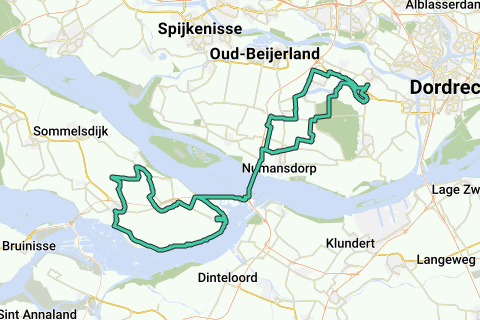 Clubrit TC De Hoekse Renners. Salida/llegada: club, Sportlaan 6, Puttershoek. Desde el club a lo largo del Binnenbedijkte Maas, sobre el puente Haringvliet y Hellegatsplein/Hellegatsdam hacia Goeree-Overflakkee. En Ooltgensplaat, la ruta pasa por el carril bici a lo largo del área natural De Hellegatsplaten. Al sur de Ooltgensplaat, el recorrido continúa por un carril bici relativamente desconocido junto al fuerte Prins Frederik y el parque eólico Piet de Wit. Luego, desde el Galathesehaven, se sigue el carril bici por la duna a lo largo de los Krammerse Slikken (con vistas al Krammer-Volkerak) hacia Oude-Tonge. Después de Oude-Tonge, la ruta pasa por tranquilos campos hacia Achthuizen. Desde aquí, nuevamente por Hellegatsdam/Hellegatsplein y Haringvlietbrug hacia la Hoekse Waard. Parada para café en el restaurante De Lely en Oude-Tonge.