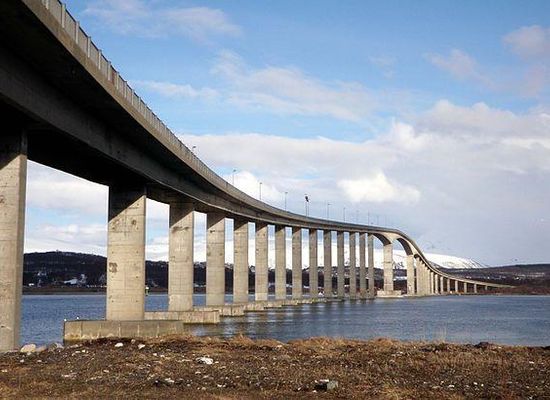 Tiene 1220 m de longitud y está hecho de concreto con 36 secciones. La más larga mide 150 m y tiene una altura máxima de 41 m. El puente es parte de la ruta estatal noruega 862. Fue inaugurado en 1974 por el príncipe Harald V, aunque fue abierto en diciembre de 1973. Tuvo un costo de 36 millones de coronas. Tuvo peaje hasta mayo de 1982.[1][2]