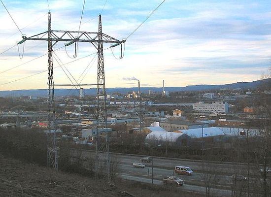 El barrio es una zona industrial más conocida por su terminal de mercancías. Esta es la terminal principal de Oslo, para el transporte de los productos, y se encuentra en la línea de Hovedbanen que anteriormente corría a la estación de Alnabru. Alnabru es el lugar de parada para los trenes de mercancías en la estación de Alna, y alrededor de 300 metros a lo largo de la Hovedbanen es el lugar de parada para los pasajeros. La ruta europea E6 también runds a través de la zona, teniendo en cuenta tanto los camiones y autos.