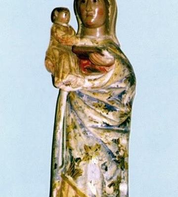 De acuerdo con la tradición, Nuestra Señora apareció alrededor del año 1758 – en el lugar donde actualmente se encuentra el santuario mariano – a una pastorcita que andaba a guardar su rebaño ya quien la Santísima Virgen María pidió una ovejita. La niña, que era muda de nacimiento, sintió que su lengua se solía y respondió a la Señora que no le daría la oveja sin el permiso de su padre que vivía en el Casal de Santa María. Entonces la niña se fue a correr para contarle al padre la petición de la Señora, que se llenó de espanto y de alegría por ver a su hija conseguir hablar y luego la ordenó que hiciera todo lo que la Señora pidiera. La pastorita regresó al lugar de la aparición para hablar a la Madre de Dios que, en respuesta, le pidió que se construyera una capilla en aquel lugar y donde prometió que habría de conceder muchas gracias. Después de haber ido al padre de la niña al lugar por esta indicada, encontró una imagen de la Virgen María sobre una piedra entre ortigas y que se llevó consigo al Casal de Santa María, pero la imagen desapareció de allí para ser vista nuevamente en el lugar original entre las ortigas.