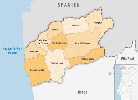 El distrito de Viana do Castelo, es uno de los dieciocho distritos que, junto con Madeira y Azores, forman Portugal. Con capital en la ciudad homónima, limita al norte y este con España, al sur con Braga y al oeste con el océano Atlántico.Pertenece a la provincia tradicional del Minho. Área: 2218,84 km² . Población residente : 244 836 habs. Densidad de población: 110,34 hab./km².