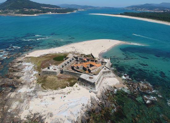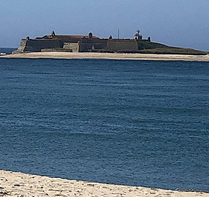 La luz se alza sobre una fortaleza abaluartada del siglo XVII que también albergaba un monasterio franciscano , una combinación extremadamente rara en Portugal (el único otro ejemplo es la Fortaleza de las Berlengas).