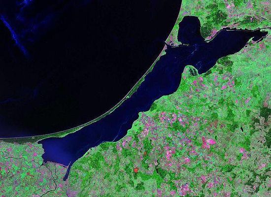 Los ríos que forman esta laguna son el río Pregolya, que lo hace en su totalidad desembocando junta a la ciudad de Kaliningrado, y el río Vístula, de este último, es el que más caudal aporta al lago, pero no lo hace como un único río, sino como un conjunto de ríos distribuidores , que parten del tronco del mismo, el más importante por su longitud es el río Nogat. La laguna se conecta a mar abierto por el estrecho de Baltiysk.