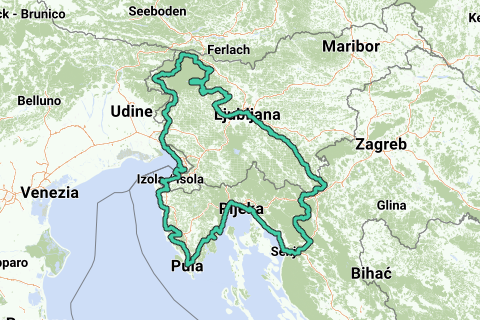 Ruta desde Kranjska Gora a Sistiana, Croacia y de vuelta por Ljubljana.